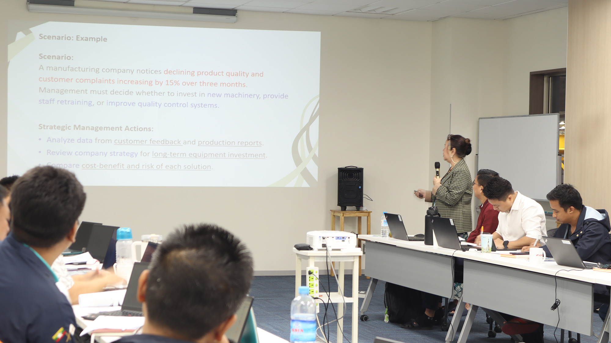 အဆိုပါ သင်တန်းအား (၂)ရက်တာကျင်းပခဲ့ပြီး ဝန်ထမ်းများအား စီးပွားရေးလုပ်ငန်းခွင်တိုင်းတွင် အကောင်းဆုံးသောရလာဒ်ရရှိစေရန်အတွက် အချိန်နှင့်အလုပ်ကိုစီမံခန့်ခွဲတတ်စေရန်၊ အသစ်သစ်သော လုပ်ငန်းဆိုင်ရာနည်းဗျူဟာများ အကောင်အထည်ဖော်တတ်စေရန်၊ လုပ်ငန်းခွင်ဆိုင်ရာ အခက်အခဲများကို မဟာဗျူဟာကျဖြေရှင်းတတ်စေရန်စတဲ့ သင်ခန်းစာအကြောင်းအရာများအပြင် လုပ်ငန်းခွင်နှင့်ပက်သက်သော ပူးပေါင်းဆောင်ရွက်ခြင်းနှင့်စီမံခန့်ခွဲခြင်းစတဲ့ လုပ်ငန်းစဥ်များကို စာတွေ့လက်တွေ့သင်တန်း ပို့ချခဲ့ပါသည်။